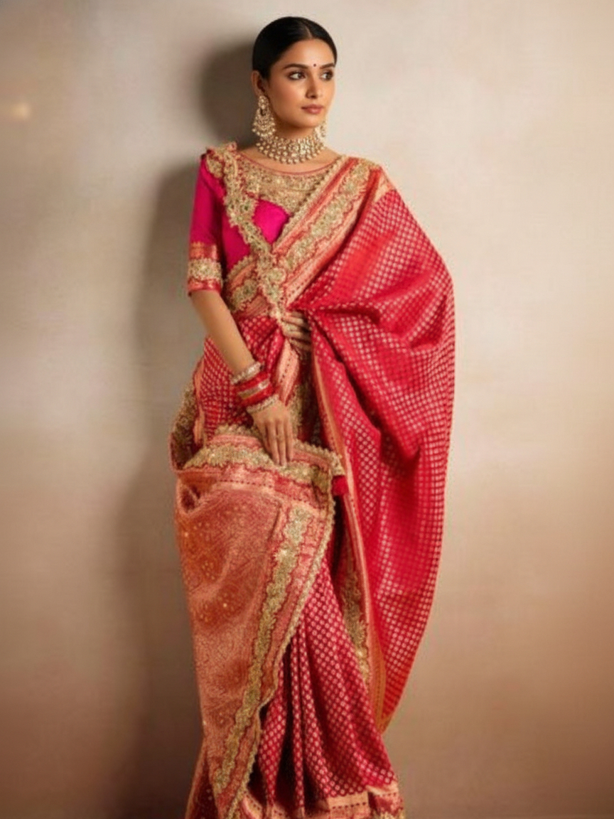 And just like that, the saree has returned to the bridal spotlight — with Rashmika Mandanna helping reignite the love for this timeless tradition.