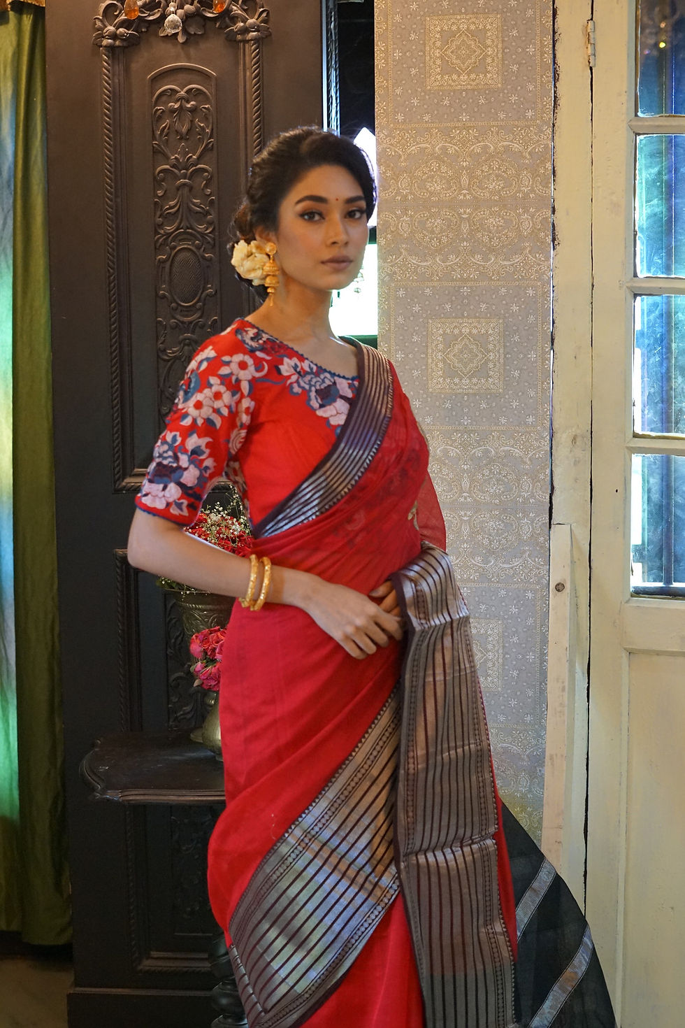 Red flowery batik sari