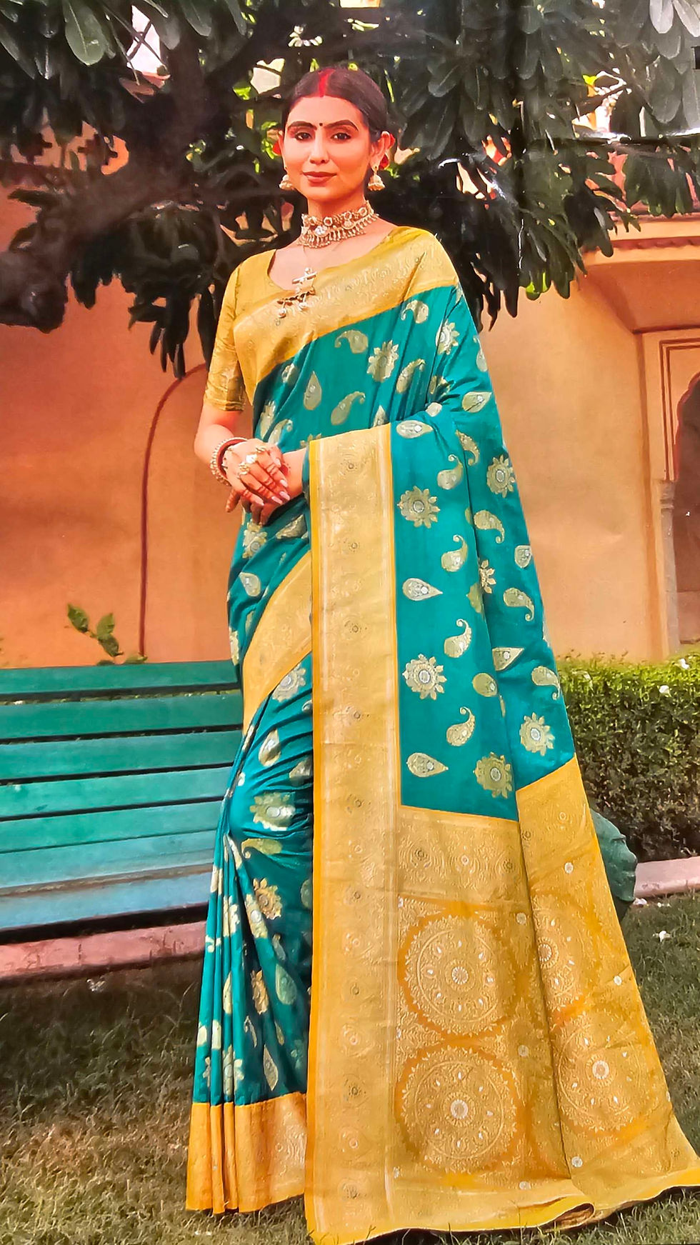 Drape Saree - Saree, Jacket & Belt Set - Sea Green.